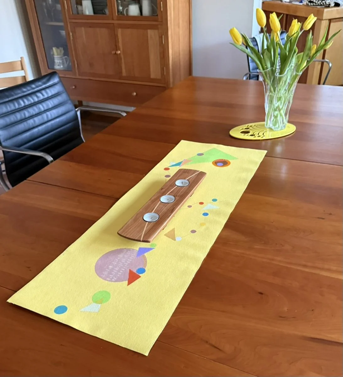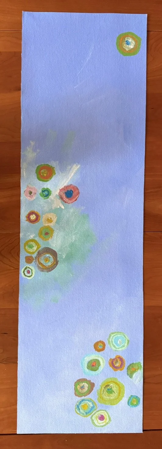 Runners are hand painted with acrylic paint on heavy canvas with felt backing (unless noted.) Interior Use. Sizes vary.
